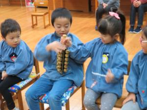 全園児で合奏楽しいな。ドラえもんの曲をしたよ。