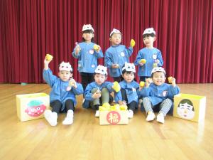 子どもたちの元気いっぱいの豆まきに鬼さんもびっくりしたようです。