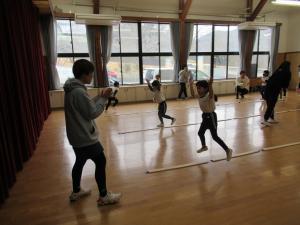 高くジャンプする、ラインを踏まない、音楽に合わせてを意識しながら跳びました。