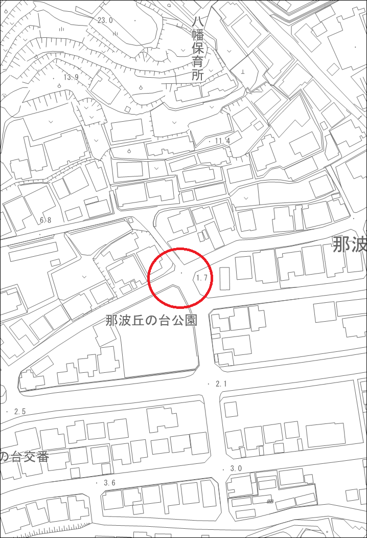 汐見台信号から南へ下り、国道2号線までの道 | 歩車道は区分されているが、歩道脇に大きな溝等があり、危険である。 |