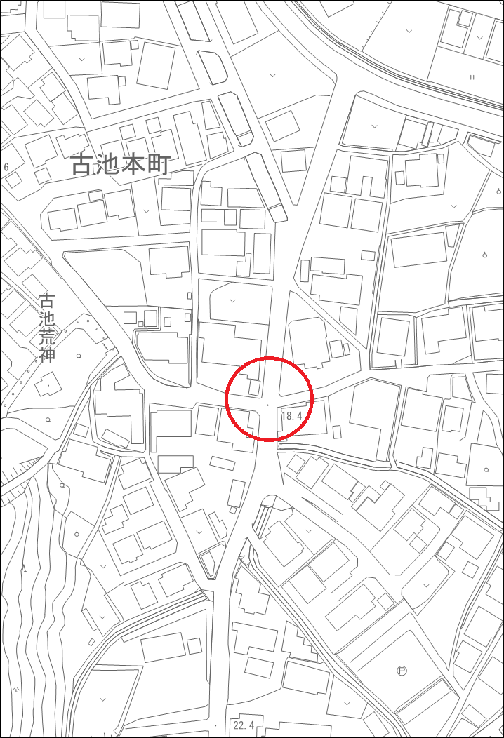 古池本町、荒神社付近の交差点 | カーブミラーが設置されているものの、通過する自動車が確認しにくく危険である。 | ・中央線の引き直し ・安全指導 |