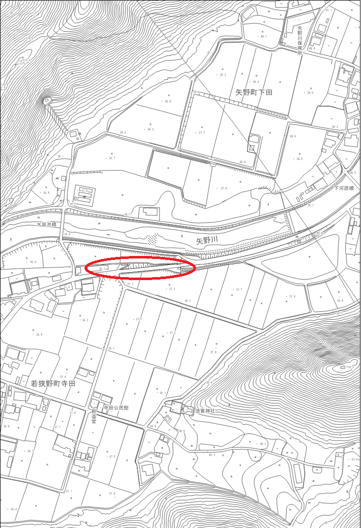 | 6 | 矢野川中学校 | 若狭野町寺田の亀甲橋西側のガードレール付近 |