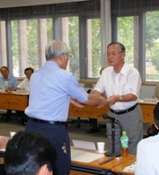 9月14日の県知事と懇談する「西播磨地域づくり懇話会」で、西播磨4市3町の総意として、周産期医療・小児救急医療体制確立に関する要望書を、各市町長を代表して県知事に渡した。